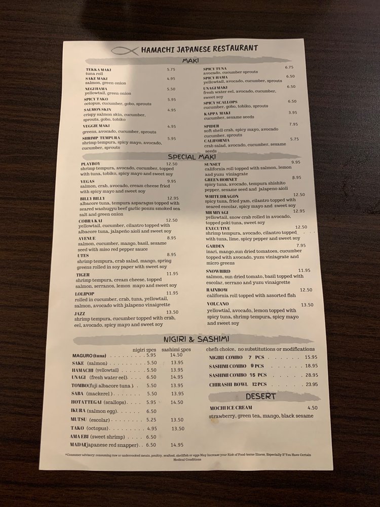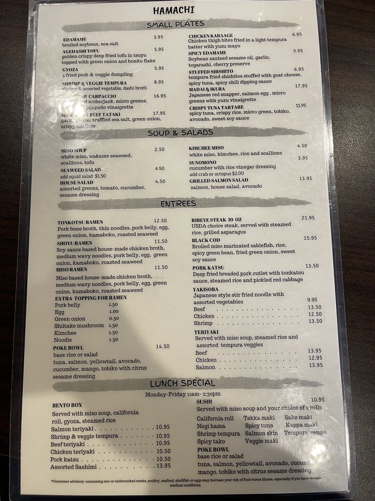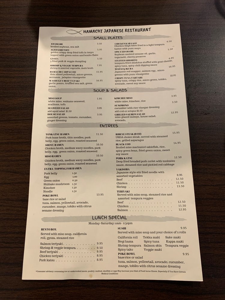Hamachi Sushi & Ramen Bar Menu (Update 2025)